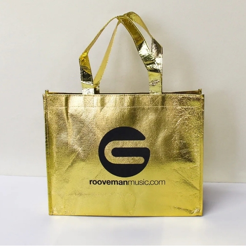 2026 도매 에코 친화적 인 사용자 정의 대형 로고 인쇄 토트 가방 재사용 쇼핑 골드 부직포 가방